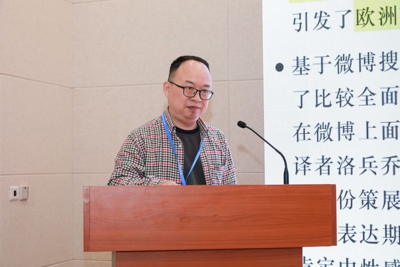 中心陈有斌副教授参会并在时政话语对外翻译研究与实践专题论坛作为第一位报告人发言。在题为“感情色彩与外交翻译——基于微博的‘好自为之’翻译网络志研究”的专题报告中,陈老师以小见大,创新性地拓展了网络志质性研究到质性和量化研究,基于微博新媒体深入探讨了语言的感情色彩与外交翻译的关系。陈老师回答了在场学者提出的问题,场面生动活泼。